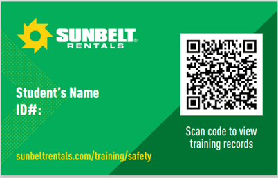 Obtendrá una Tarjeta de Capacitación de Sunbelt Rentals tras completar su primer curso de capacitación en seguridad en nuestra nueva plataforma. Con esta tarjeta, usted y otros podrán ver y descargar rápidamente su expediente académico, que incluirá un registro de la capacitación que acaba de completar, junto con los registros de todos los cursos anteriores y futuros completados a través de Sunbelt Rentals. También mostrará sus cursos en curso y cualquier otro registro de capacitación, certificaciones, licencias, etc., que decida cargar a nuestro sistema. Su tarjeta se enviará por correo a la dirección que figura en su perfil de capacitación.